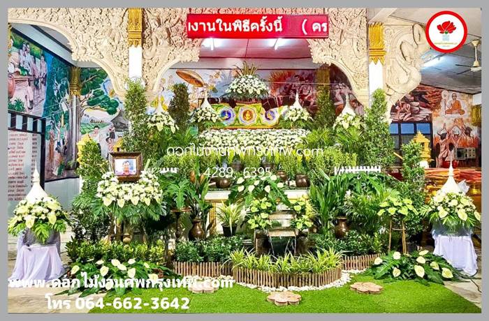 สวนดอกไม้หน้าหีบ และสวนธรรมชาติในงานศพ เป็นการออกแบบดีไซน์ของเรา ทีมงานดอกไม้งานศพกรุงเทพ ที่ได้จัดประดับความสวยงามและความร่มเย็นอย่างเป็นธรรมชาติหน้าหีบศพ ซึ่งเราต้องการให้การจัดงานศพทุกๆงาน เป็นพื้นที่สีเขียวที่จะให้ความสดชื่นและความสบายตาพร้อมความสบายใจเมื่อได้พบเห็นสวนสวยๆประดับงานศพจากฝีมือของเรา ในการจัดสวนประดับพิธีศพของเรานั้น มี 2 รูปแบบ คือ สวนธรรมชาติหน้าศพ ที่เน้นความเป็นธรรมชาติและสีเขียวของต้นไม้ประดับที่เป็นพันธุ์ไม้มงคลนำมาจัดตกแต่งในงานศพอย่างสวยงาม และอีกรูปแบบหนึ่งคือ สวนพิธีศพแบบผสมผสาน ที่เราได้นำสวนสีเขียวและความสวยงามของดอกไม้ นำมาจัดตกแต่งแบบประยุกต์ผสมผสานกัน จนกลายเป็นสวนดอกไม้งานศพที่สวยและงดงาม นอกจากนี้ เรายังได้จัดประดับสวนงานศพด้วยสวนน้ำตก จัดเป็นสวนหย่อมงานศพ เพื่อเพิ่มความสดชื่น และร่มรื่นพร้อมความสวยงามประดับในงานศพอีกด้วย และท่านสามารถนำต้นไม้ที่เราได้ประดับตกแต่งในพิธีศพไปบริจาคให้แก่วัดหรือชุุมชนเพื่อเป็นกุศลต่อไปได้