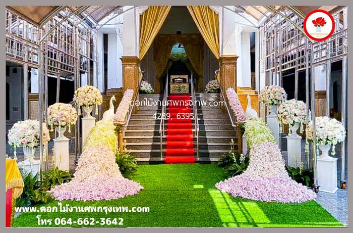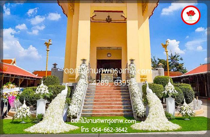จัดประดับนกยูงหน้าเมรุสวยหรู ร้านดอกไม้งานศพกรุงเทพ-ปริมณฑล รับจัดดอกไม้หน้าศพสวยหรูทุกรูปแบบราคาถูกมากที่สุด รับจัดผูกผ้าม่านฉากประดับในงานพิธีต่างๆ จัดงานศพราคาประหยัด
